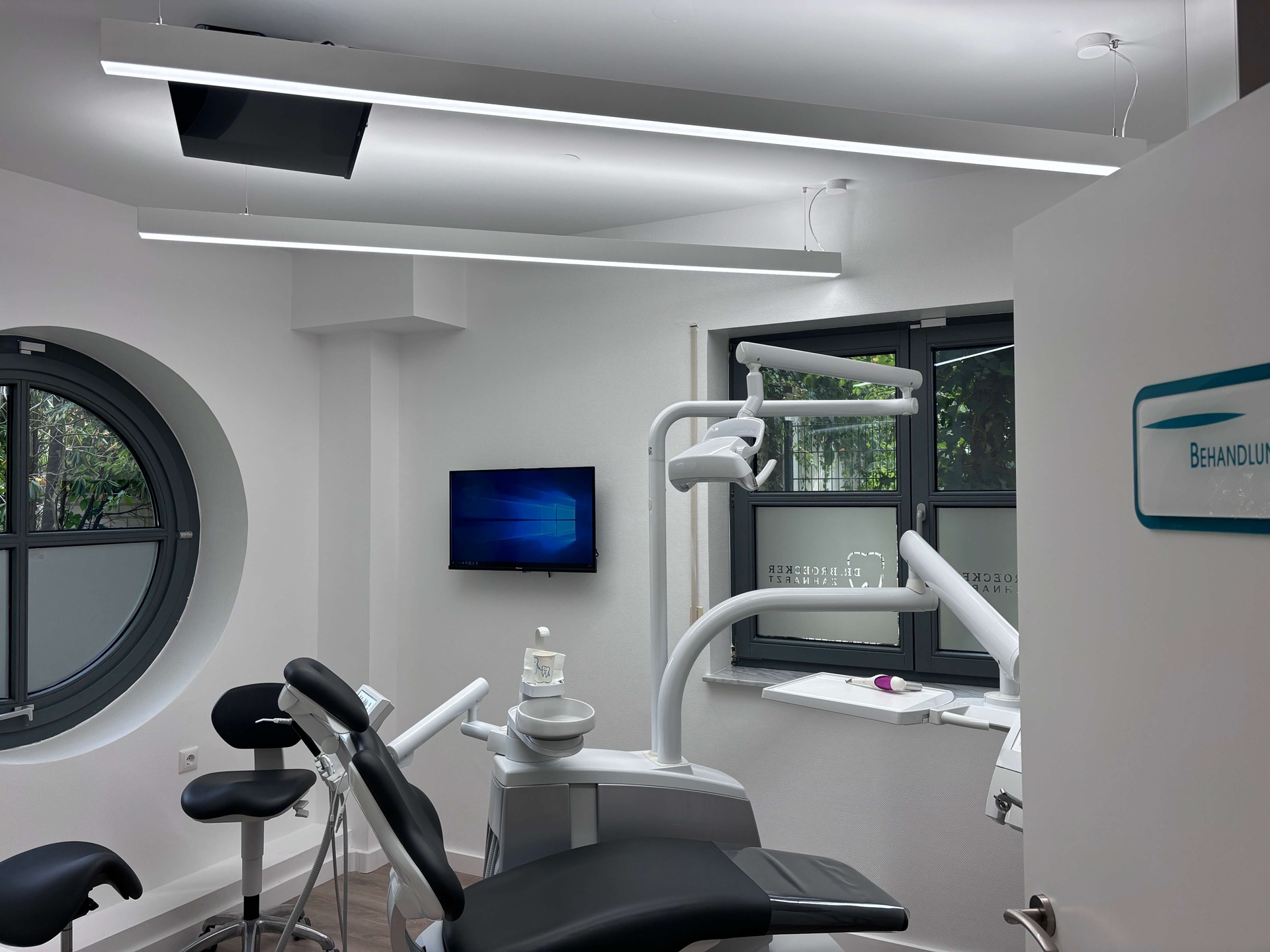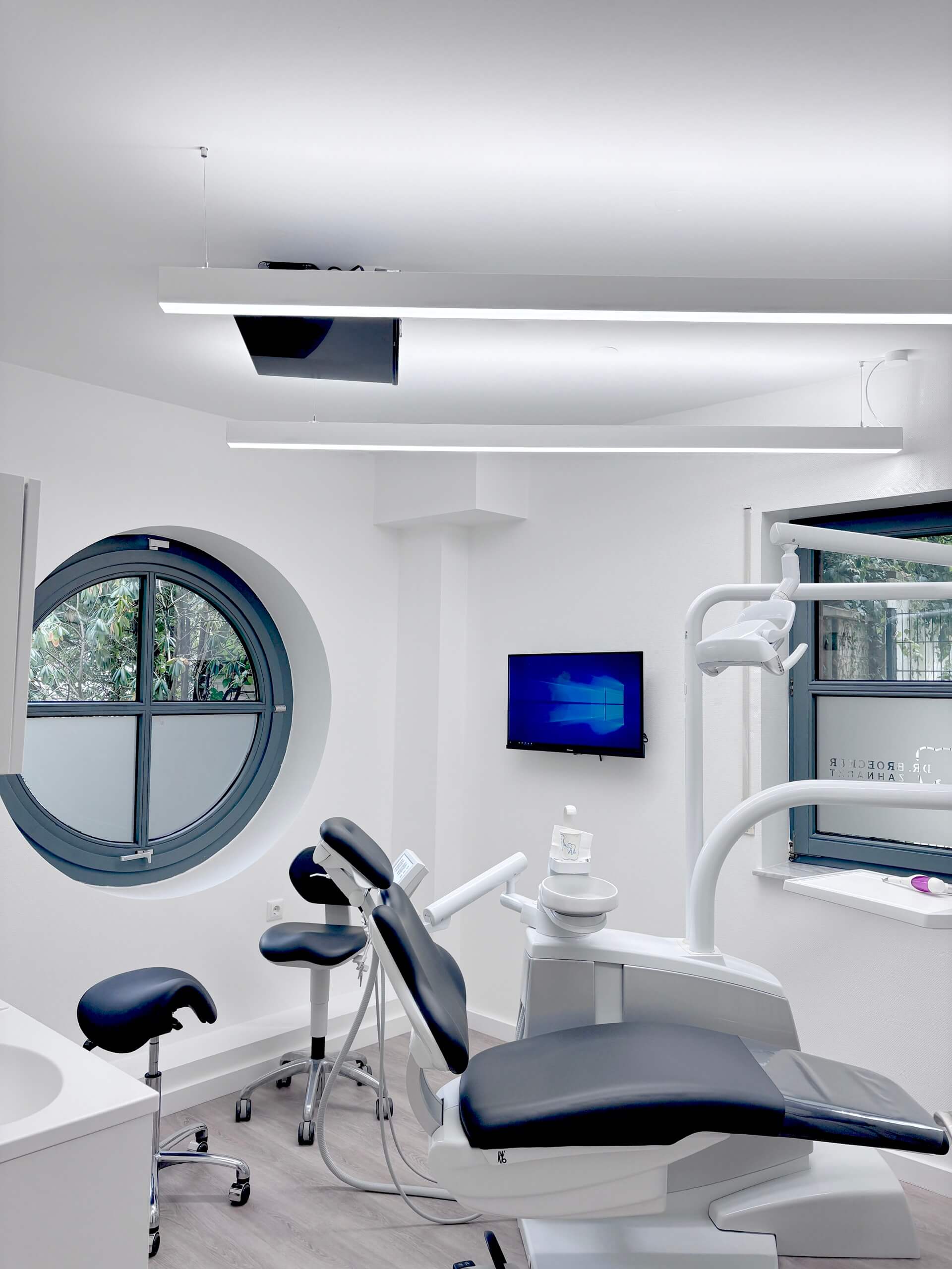 A pair of full-spectrum, linear, and bidirectional LED lamps, each measuring 1756 mm in length. Two independent lamps offer flexibility in installation as required. Bidirectional lighting guarantees uniform illumination across the treatment room. This ensures clear and comfortable lighting, optimizing conditions for precision dental work.
